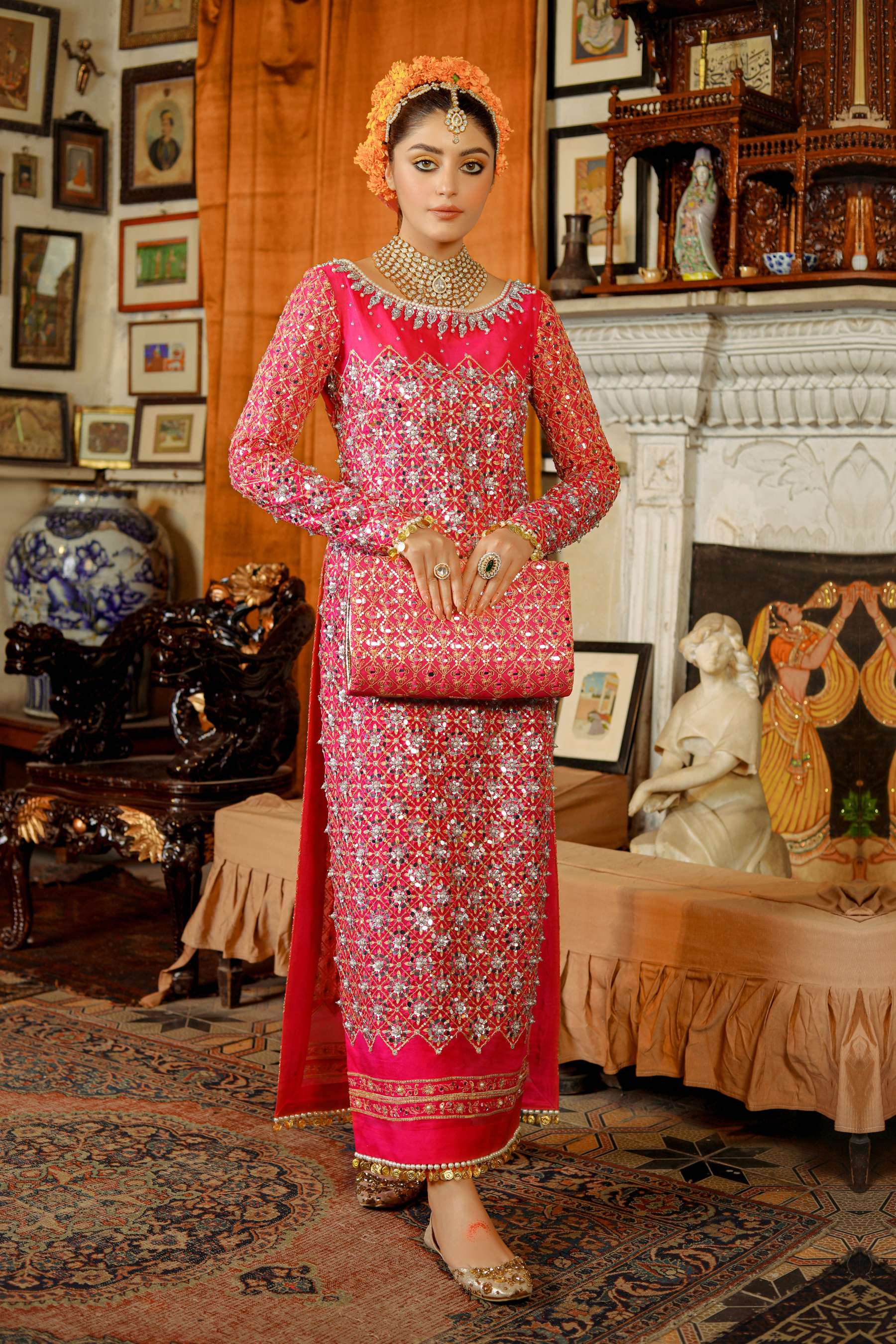 Rouge is a full length shirt adorned with thread mirror kora dabka crystals and pearls.. Beautiful jewellery neckline engancing the modern look while churidar is giving it a traditional look.it comes with a beautiful clutch to giving this dress a chic look.